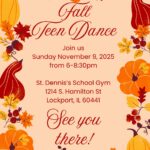 - Fall Teen Dance by One Dance at a TimeJoin us for a fun evening of dancing Nov 09, 2025 at 06:00pm – 08:30pm, no prior experience needed. Where: St Dennis Catholic Church Parish Hall, 1214 S Hamilton St, Lockport, IL 60441