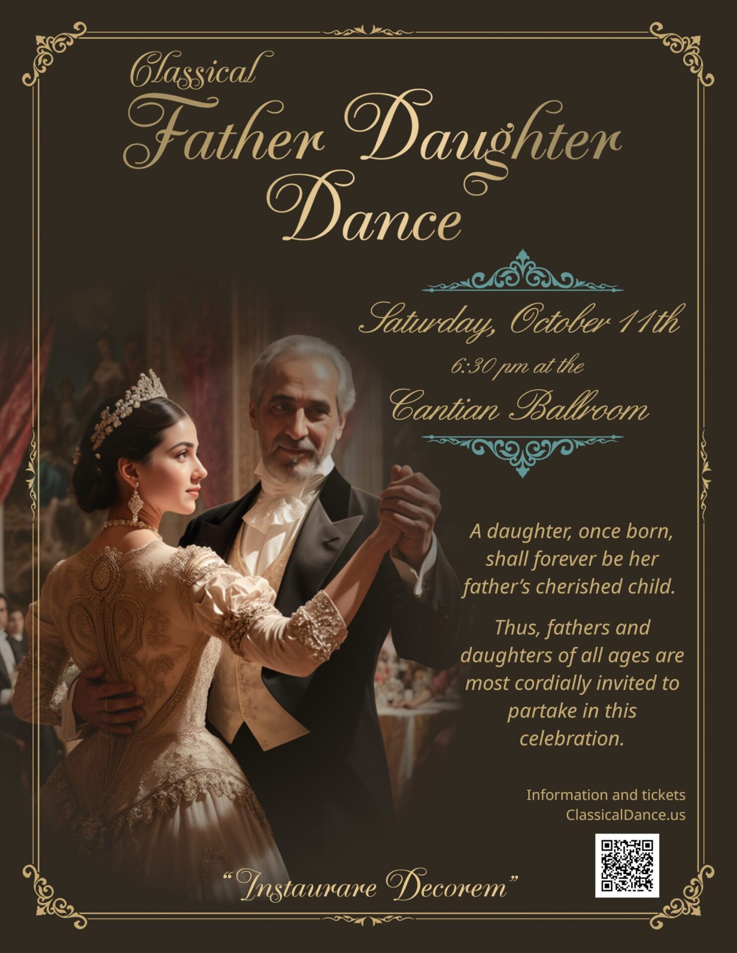 We hope everyone will feel confident and beautiful with much dancing and laughter at the Classical Father Daughter Dance!